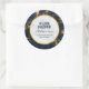 Um adesivo comercial com um na moda e um fundo elegante de marinho azul e mármore dourado. Camadas sobre o topo é um círculo com uma borda falsa de folha de papel dourada com o seu dentro de texto personalizado.