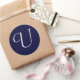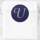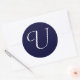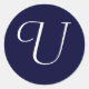 Adesivo Redondo Marinho Blue & White Monograma Selo inicial "U"