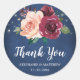 Este obrigado elegante que vocês adesivos de casamento apresentam rosas cor-de-água, cor-de-rosa pincelada e burgundy, folhagem e cordas em um fundo azul marinho. Personalize esses adesivos com seus nomes e data de casamento. Estes adesivos são ideais para decorar favores de casamento. Fazem parte de uma coleção que inclui artigos de papelaria e artigos de casamento correspondentes. Visite nossa loja ou veja nossas páginas de coleta para ver o cheio de produtos de casamento e noivas que você pode personalizar para o seu casamento.