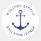 Adesivo Redondo Marinho de âncora náutica de boas-vindas personali