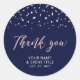 Este obrigado personalizado moderno que você cola adicionará detalhes de na moda ao seu dia especial. Este design apresenta a inscrição rosa dourada " Obrigado " e o hexágono confetti num fundo azul marinho. Convites de aniversário e estacionamentos correspondentes estão disponíveis no meu compro BaraBomDesign.