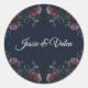 Adesivo Redondo Marinho escuro Blue Floral Elegante Casamento Maro
