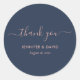 Marinho azul e obrigado de casamento escamoteado que você usa como adesivos com uma fonte moderna. Itens correspondentes disponíveis.