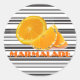 Marmalade Sticker, com a imagem de laranjas na caligrafia em fundo branco preto.