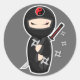 Uma boneca de madeira japonesa ilustrada por Megan Anderson. Adicione o texto ou mude a cor do fundo através "personalizam-na."