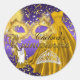 Adesivo Redondo Mascarada de Quinceanera Dourado e Roxo