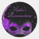 Adesivo Redondo Mascarada de Quinceanera, púrpura e preta
