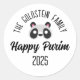 Adicione um toque festivo às celebrações do Purim com o nosso adesivo de nome personalizado! Apresentando uma máscara de Purim lúdica, ela é perfeita para o fazer do seu Mishloach Manot (cestas de presentes) especial extra. O destaque? Um recurso personalizado de nome da família! Adicione seu nome de família ao design, como "A Família Cohen", criando um adesivo único e pensativo que é realmente seu.