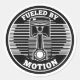 Bold circular motorcycle emblem inspired by mechanical motion and biker culture. The piston symbol represents energy, movement, and the mindset of riders driven by motion.