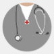 Vedantes de envelopes médicos criativos, etiquetas de favoritos partidários e adesivos médicos para anúncios de graduação em escolas médicas, convites para festas de formando médicos e notas de obrigado que contêm esfregões hospitalares de cinzas.