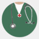 Vedantes de envelopes de graduação de médicos criativos, etiquetas de favoritos ou adesivos de presentes para formando de escolas médicas que incluem esfregões hospitalares verdes e estetoscópio.