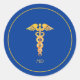 Médico ouro Caduceus e monograma no adesivo azul. Pronto para ser personalizado.