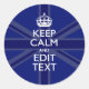 Seu personalizado "Fique Calmo" dizendo em uma ousada decoração azul-sindical. Um estilo "Manter Calmo" personalizado dizendo em um presente gentil. Humorístico ou caprichoso experimente suas palavras criativas em duas linhas editáveis de texto. Lembre-se de usar letras CAPITAL para obter melhores resultados. Use o link "Perguntar a este Designer" para entrar em contato conosco com suas solicitações especiais de design ou para obter assistência com suas necessidades de personalização.
