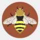Este adesivo apresenta uma abelha gráfica de mel em um conjunto preto e amarelo contra a cor laranja quente de ferrugem.