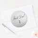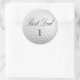 Adesivo redondo com uma imagem de uma bola de golfe branca com a frase personalizável "Melhor Pai 1". Consulte a etiqueta e o rótulo do favorito correspondentes. Ver a coleção inteira do "Padre Day Sticker" nos CONVITES | Seção Stickers & Labels