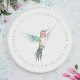 Um beija-flor em voo pintado à mão em aquarela suave em um adesivo memorial personalizável delicado e carinhoso em prata clássica