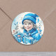 Adesivo Redondo Menina Antiga de Azul com Caixa de Presente e Flor