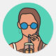 Adesivo Redondo Menina bebendo chá de bolhas moderno