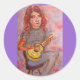 Adesivo Redondo menina de cabelo vermelho e ukulele