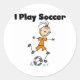 Um jogador de futebol, figura de pau-menina, e texto que diz "Eu jogo futebol!" em T-shirts, canecas, cartões de tote, e outros presentes e roupa de futebol que se pode personalizar no local!