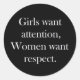 Adesivo Redondo Meninas querem atenção mulheres querem respeito ve