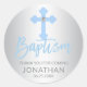 Adesivo Redondo Menino Moderno, Blue Cross Baptism Boy Obrigado