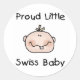 Nacionalidades de bebês T-shirt com um bebê e um texto no estilo de criança que diz "Bebê Suiço Orgulhoso"! Nossa camiseta Suiça Orgulhosa é um presente de excelente para o novo menino.