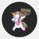 Adesivo Redondo Menorah Unicorn Jewnicorn Hanukkah Pajamas