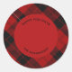 Adesivo Redondo Mensagem de nome personalizado do Red Black Tartan