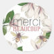 Adesivo Redondo Merci Beaucoup Obrigado com Flor e Abelha