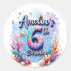 Add a magical finishing touch to your party favors, envelopes, or treat bags with these adorable mermaid birthday stickers! The design shown features the name Amelia and her age in shimmering mermaid scales, surrounded by colorful coral reefs, seashells, starfish, and bubbles for a true under-the-sea vibe.