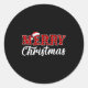 Adesivo Redondo Merry Christmas Buffalo Plaid Red Santa Family Mat