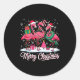Adesivo Redondo Merry Christmas Flamingo Lights Santa Hat Snow Xma