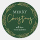 Adesivo Redondo Merry Christmas Label Holly Wreath Faux Gold Foil
