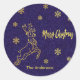 Adesivo Redondo Merry Christmas rendeer snow blue gliter gold