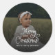 Adesivo Redondo Merry Christmas Whimsical Script Baby Photo