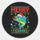 Adesivo Redondo Merry Fishmas B Fish Fishing Christmas