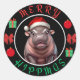 Adesivo Redondo Merry Hippmas: Moo Deng Christmas Design