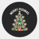 Adesivo Redondo Merry Pugmas Funny Pug Christmas Tree Holiday Long