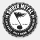 "Live Fast - Tocar Duro - Cabeça Bang ... Muito Alto - Muito Ruim!" Design de emblema de metal rápido, com uma nota musical flamejante, crânios e correntes. Camisas, botões, presentes.