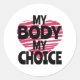 Design de texto com a citação "Meu corpo, minha escolha". Defenda a dignidade humana, a igualdade de gênero, os direitos das mulheres e a autodeterminação.