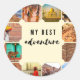 Um adesivo redondo clássico da "Minha Melhor Aventura" com uma cena inspiradora de uma jornada emocionante, com cores vibrantes e um sentido de exploração. A design captura o entusiasmo da aventura, seja por meio de montanhas, florestas ou céus abertos, evocando um espírito de descoberta e diversão.