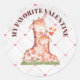 Este adesivo adorável mostra Mãe e Bebê Girafa sobre um diamante e fundo cardíaco. O texto pode ser personalizado.