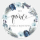 Adesivo elegante de Quinceañera azul. Ótimo para lembrancinhas, selo de envelope ou como parte da decoração do seu evento. Lindo arco floral em aquarela azul em uma bela mistura de tons de azul poeirento, azul marinho e azul real. Frase atraente "quince" em caligrafia moderna manuscrita. Possibilidade de adicionar seu nome. Possibilidade de alterar "Mis" para "My" para a versão em inglês. Parte da nossa coleção "Quinceañera Floral em Aquarela Azul Elegante" com uma variedade de produtos coordenados disponíveis.