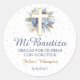 Adesivo Redondo Mi Bautizo Niño Azul Flores Cruz Baptism