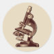 Perfeito por presentes para o cientista da sua família. Microscópio Vintage em tons dourados e castanhos