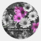 Deliciosas margaridas roxas africanas em preto e branco com cores parciais Os milagres acontecem com um adesivo inspirador. Fotografia de Susan. Esta imagem está disponível em muitos produtos da minha loja. Visite o tesouro dos olhos sorrindo para ver mais fotografias de flores e natureza e cartões e presentes de arte digitais.