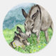 Adesivo Redondo Miniatura Donkey Mamãe e Baby Watercolor Art