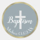 Adesivo Redondo Mínima Faux Dourado Baptism Cross Child Name