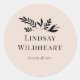 Custom Minimal Floral Beige& Black Botanical Salon Round Sticker.